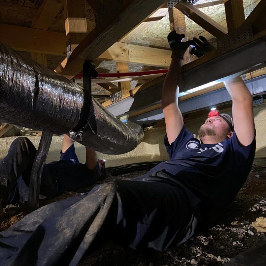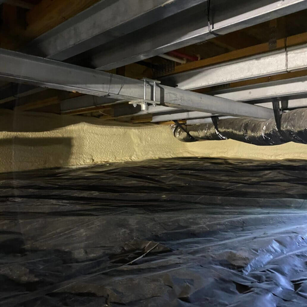 We proposed a plan to use 3 SmartJacks attached to a steel I-beam. The I-beam would be positioned across 11 pieces of steel tubing. The pieces of tubing were positioned along floor joists under the home. This was done to distribute the pressure from the jacks more evenly and prevent it from causing a break in the floor joists.