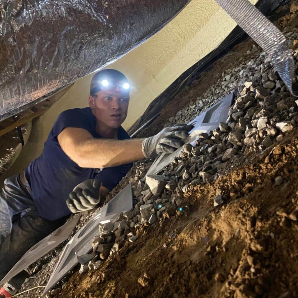The First step in the process was to dig holes where the jacks would be placed. The 2’x2’x1’ holes were dug and are then filled with gravel to provide a stronger foundation for the SmartJacks, making them less susceptible to things like erosion and shifts in the soil. It took roughly 5 buckets of gravel to fill each hole, ensuring that the SmartJack placed on top would stay in place.