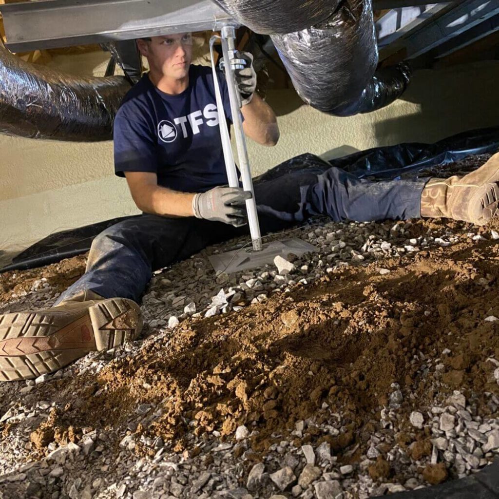 After a thorough inspection of the home, TFS specialist, Kolby Penton, recommended the use of our patented SmartJack System from Supportworks for the sagging floor repair. The fully adjustable SmartJacks were installed under the home where supports were not previously located. Once installed, the jacks were adjusted to the right height to instantly bring the sagging floors back to their original position, as well as provide added support for the home.