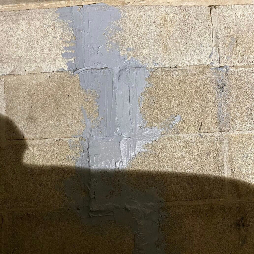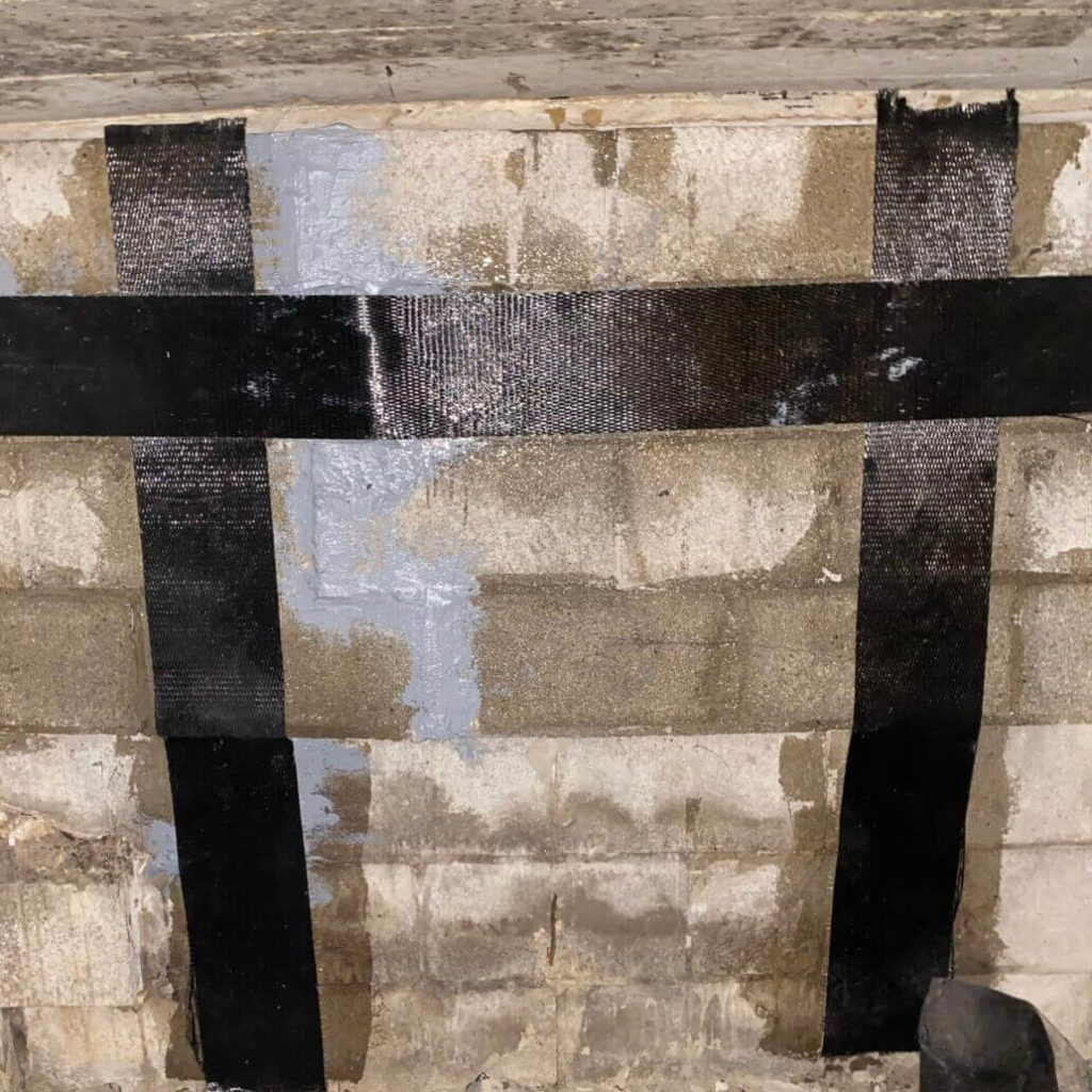 The crew added another strip of CarbonArmor horizontally across the other two straps to provide further support for the wall. After the CarbonArmor was installed, it was time to move onto the piers.