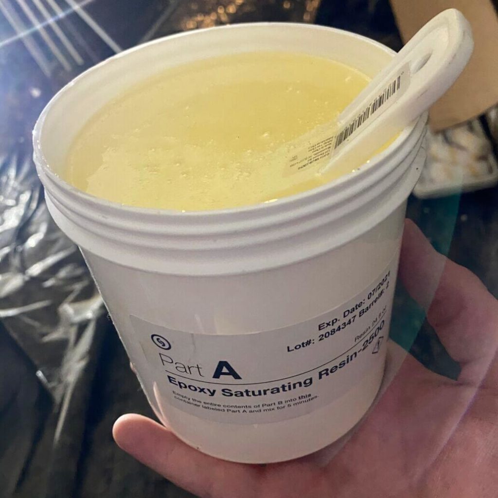 Our production crew arrived on the scene and benchmarked the locations of the CarbonArmor and Push Piers. Once identified, the prep work began. The area where the CarbonArmor was installed was first ground down, and all cracks were filled with epoxy paste to ensure they were as smooth as possible.