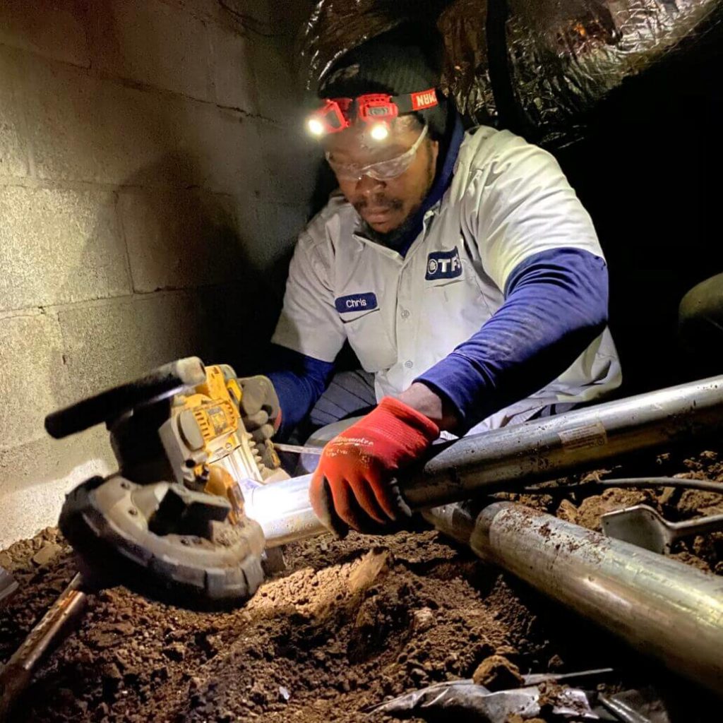After each pier reached the bedrock, the crew cut off the excess pipe and caped each one. The home was stabilized, and the crew cleaned up by backfilling the hole they had dug and replacing the vapor barrier which was covering the entirety of the crawl space. Lane was very pleased with our wall support and foundation stabilization work and thanked us for the peace of mind that we have provided him!
